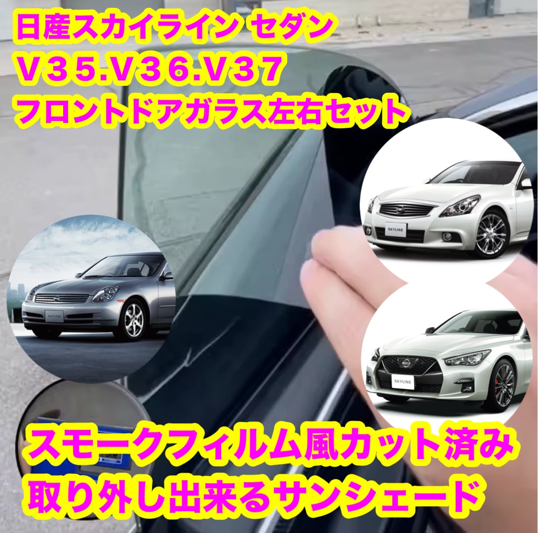 日産スカイライン セダン V35 V36 V37 スモークフィルム風 取り外し出来るサンシェード フロントドアガラス左右セット