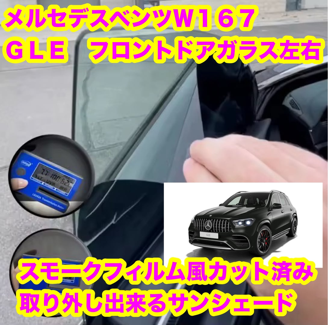 メルセデスベンツ w167 GLE用 スモークフィルム風 取り外し出来る カット済み サンシェード フロントドアガラス左右セット