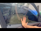 スモークフィルム風で、窓に挟めて使うサンシェードで取り外しが簡単で、一般的なサンシェードの様ないかにもサンシェード感が無くスモークフィルムを貼った様な見た目になります。